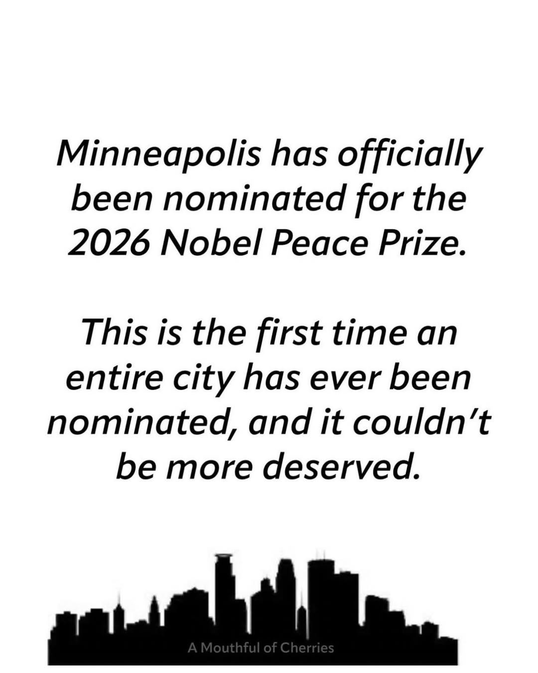 A Nobel Peace Prize nomination for Minneapolis is really a recognition of people power and it’s the first time a whole city has been put forward for the prize.