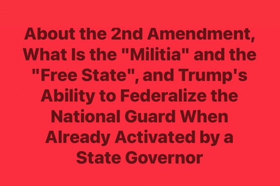 ABOUT THE 2ND AMENDMENT, WHAT IS THE “MILITIA” AND THE “FREE STATE”, AND TRUMP’S ABILITY TO FEDERALIZE THE NATIONAL GUARD WHEN ALREADY ACTIVATED BY A STATE GOVERNOR