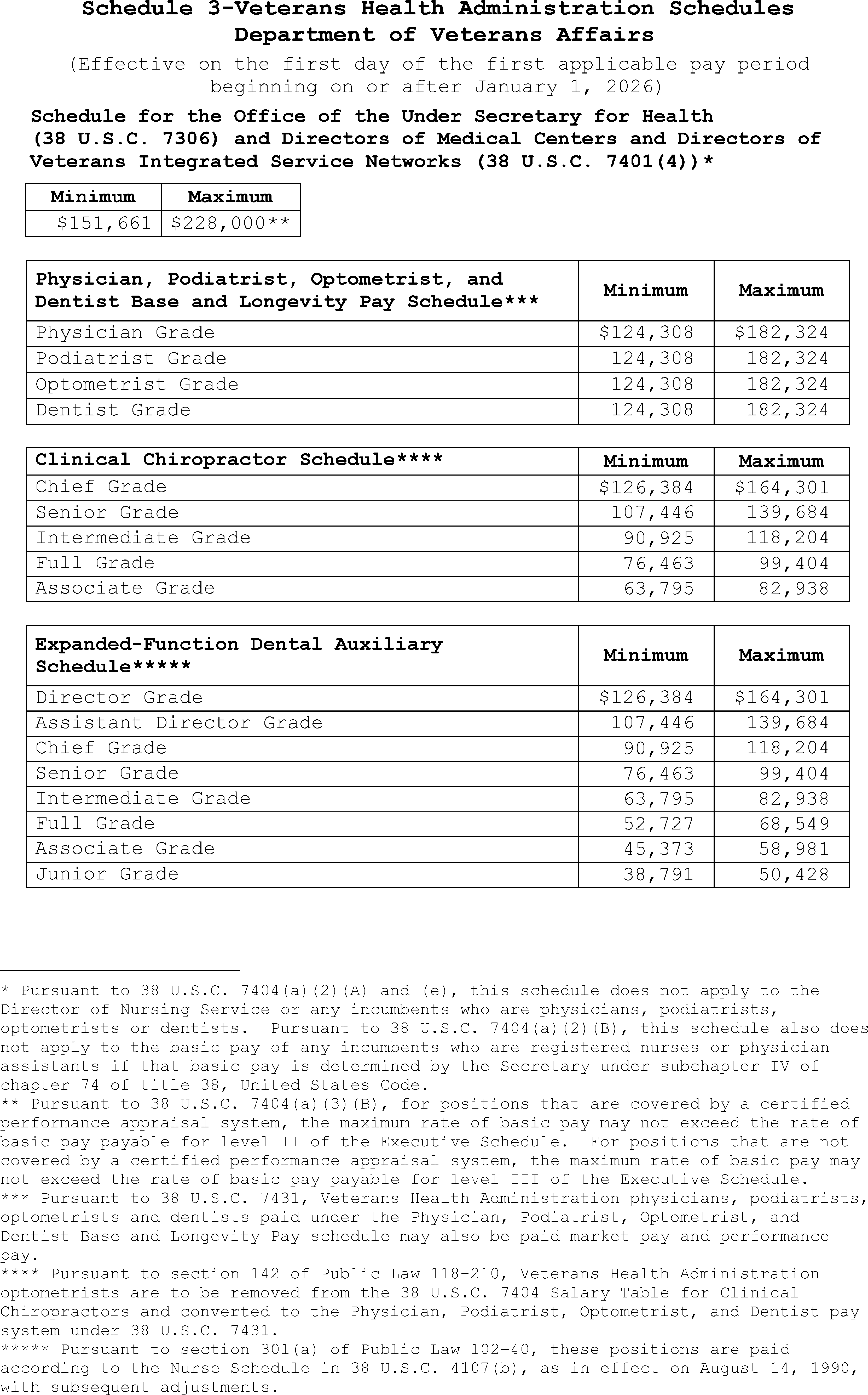 (c) The schedules for the Veterans Health Administration of the Department of Veterans Affairs (38 U.S.C. 7306, 7401, 7404; section 301(a) of Public Law 102-40) at Schedule 3.