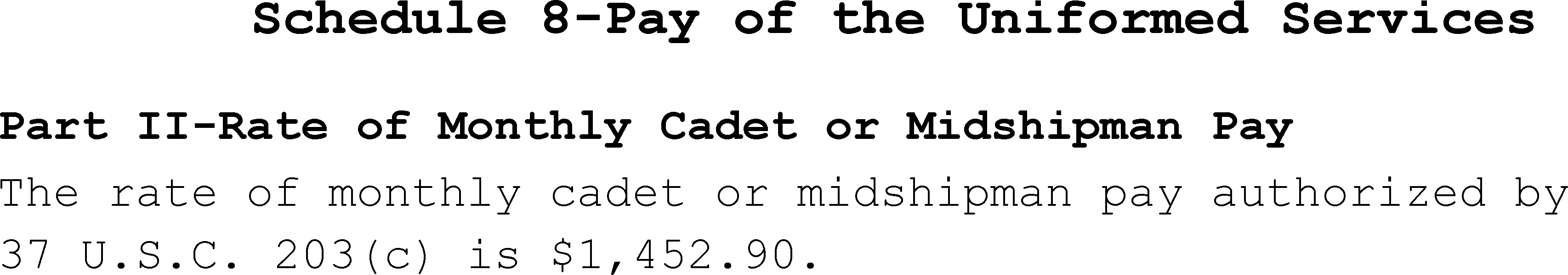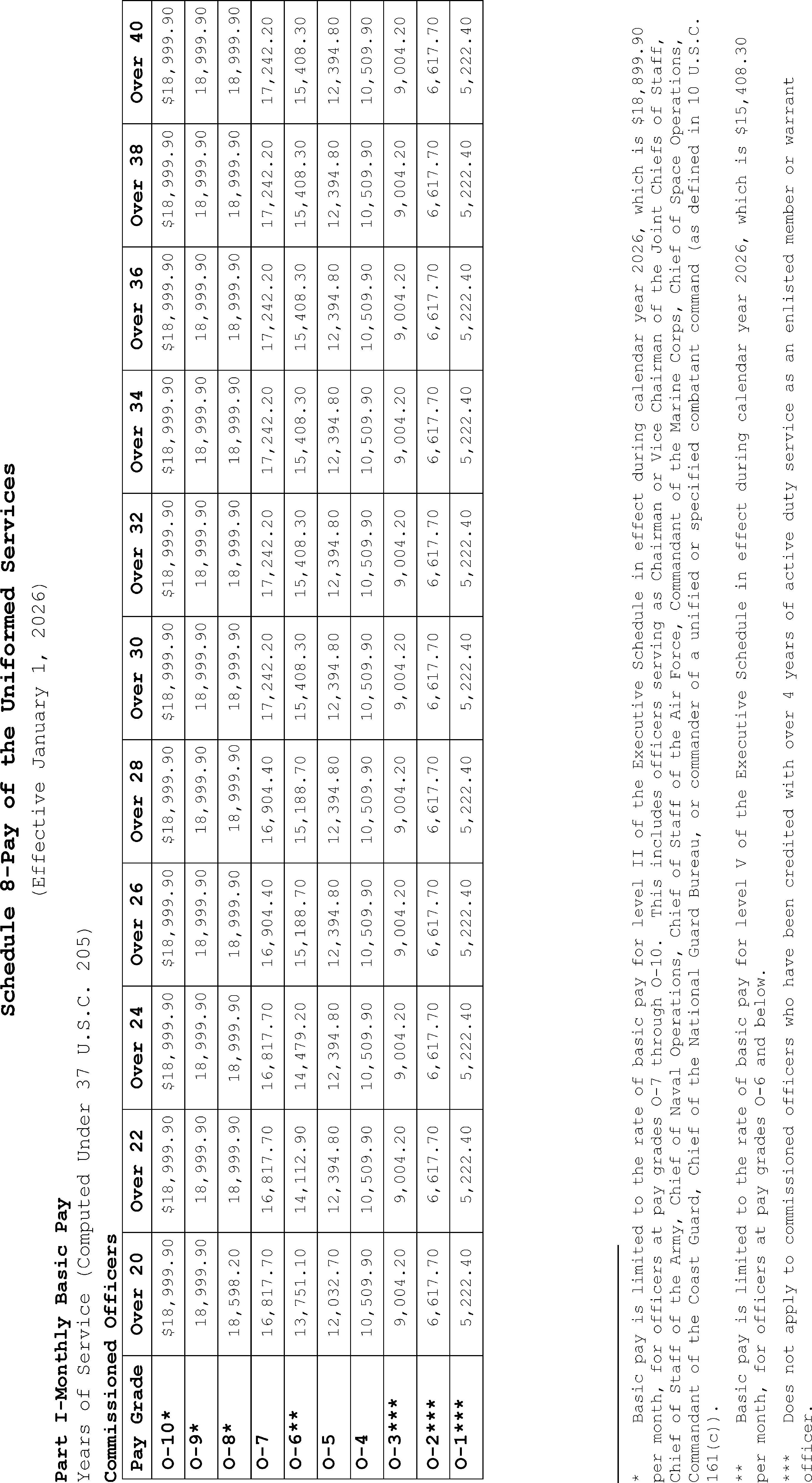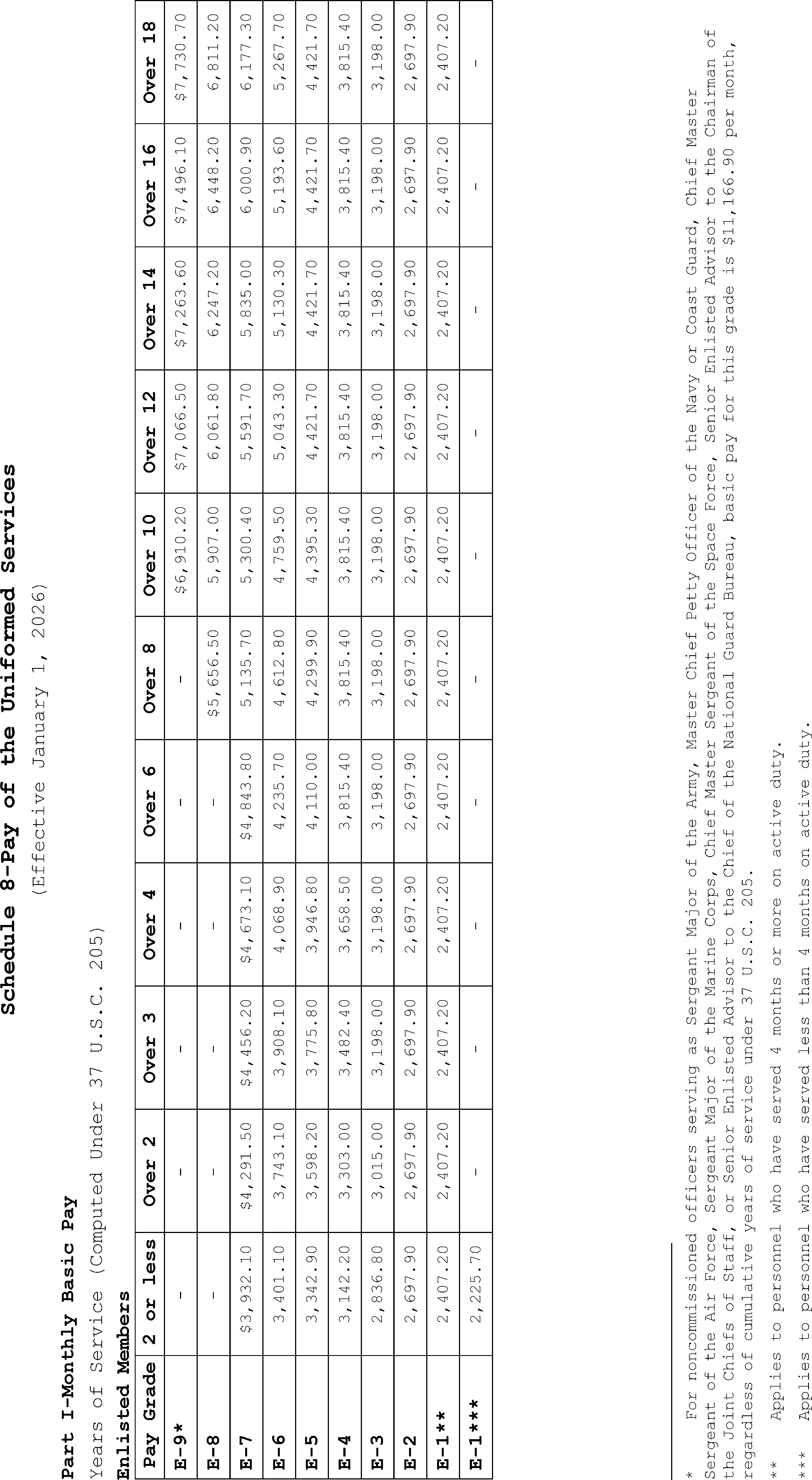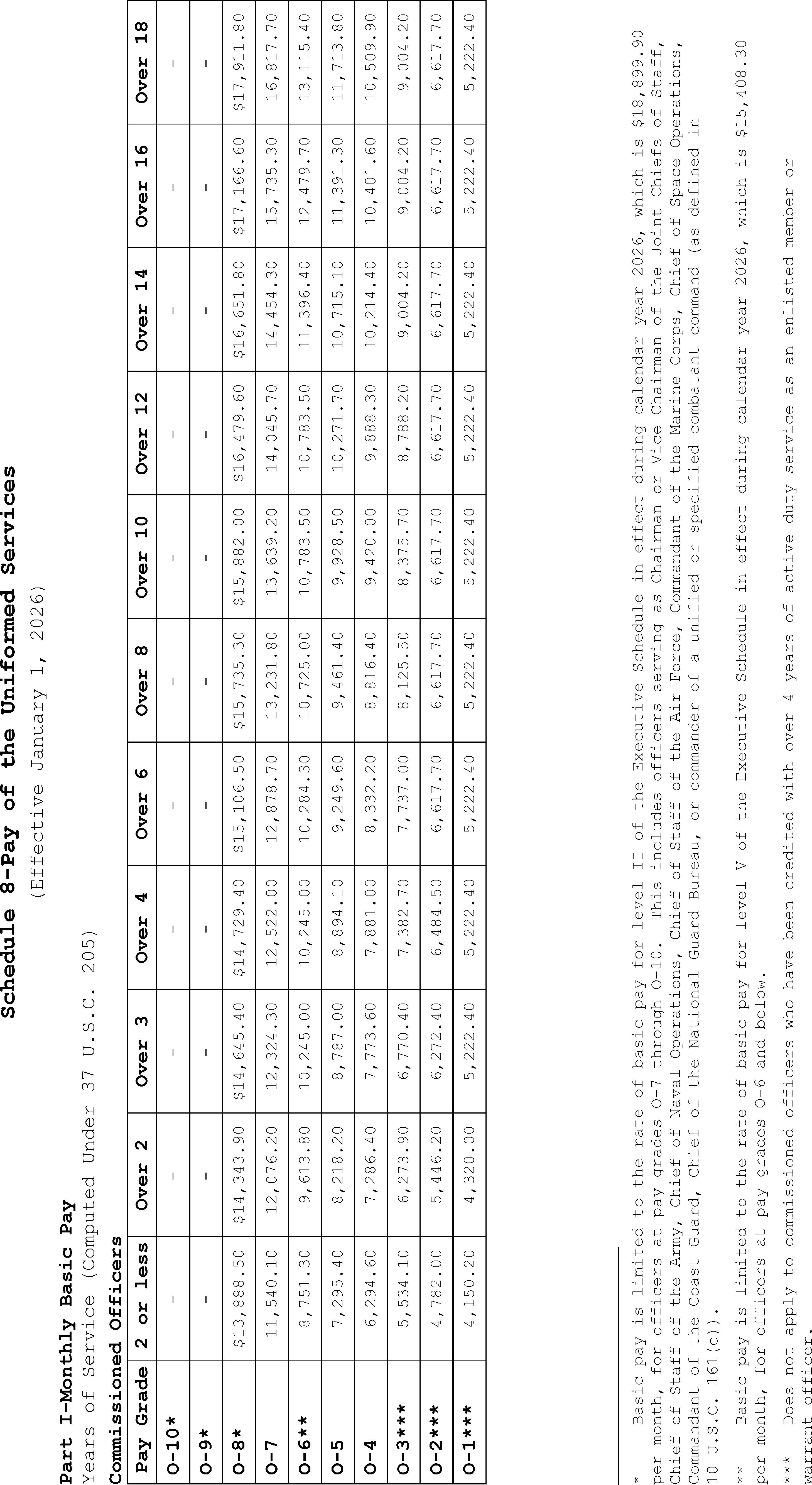 The rates of monthly basic pay (37 U.S.C. 203(a)) for members of the uniformed services, as adjusted under 37 U.S.C. 1009, and the rate of monthly cadet or midshipman pay (37 U.S.C. 203(c)) are set forth on Schedule 8 attached hereto and made a part hereof. Additionally, the Director of the Office of Personnel Management (Director) is directed to assess whether to provide up to a total increase of 3.8 percent (inclusive of the increase provided under Section 1) to the rates of pay of certain Federal civilian law enforcement personnel, as determined by the Director following coordination with agencies and consistent with 5 U.S.C. 5305.