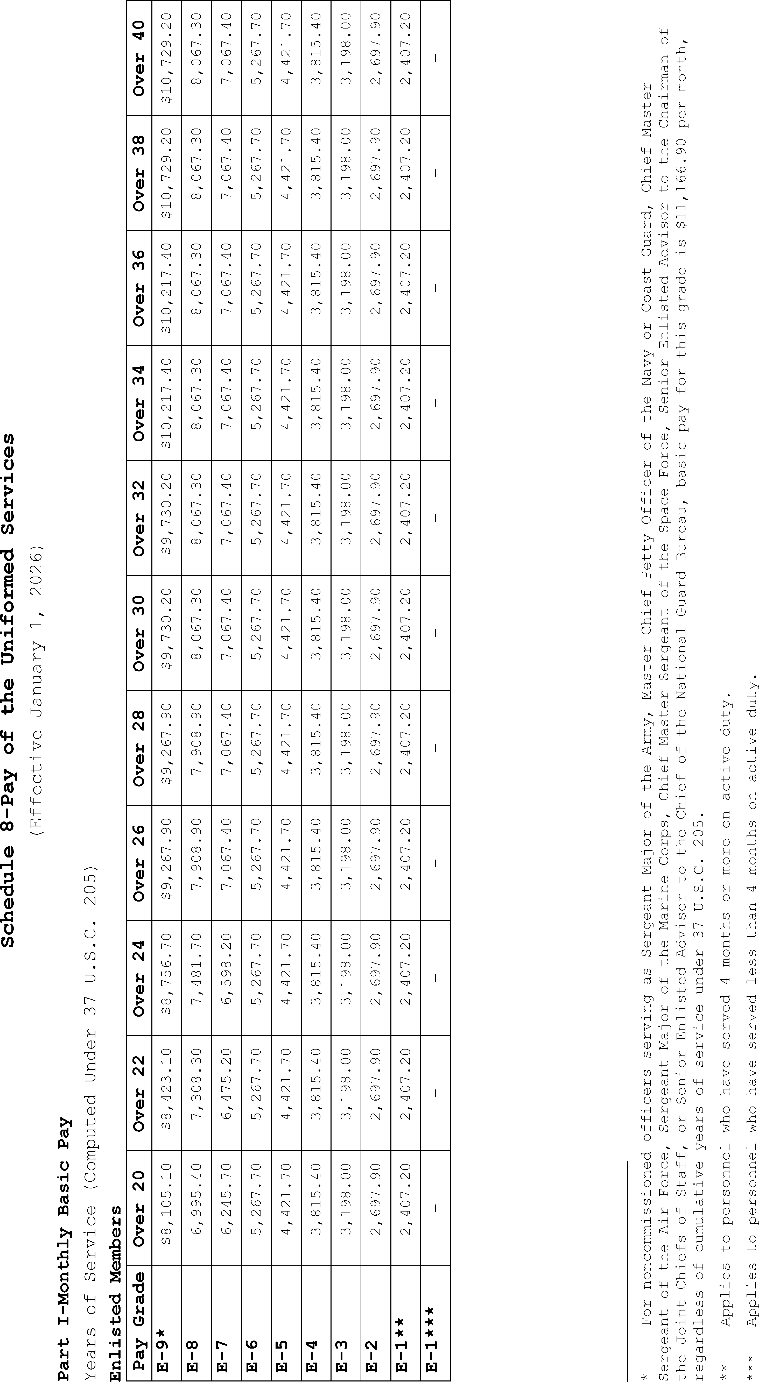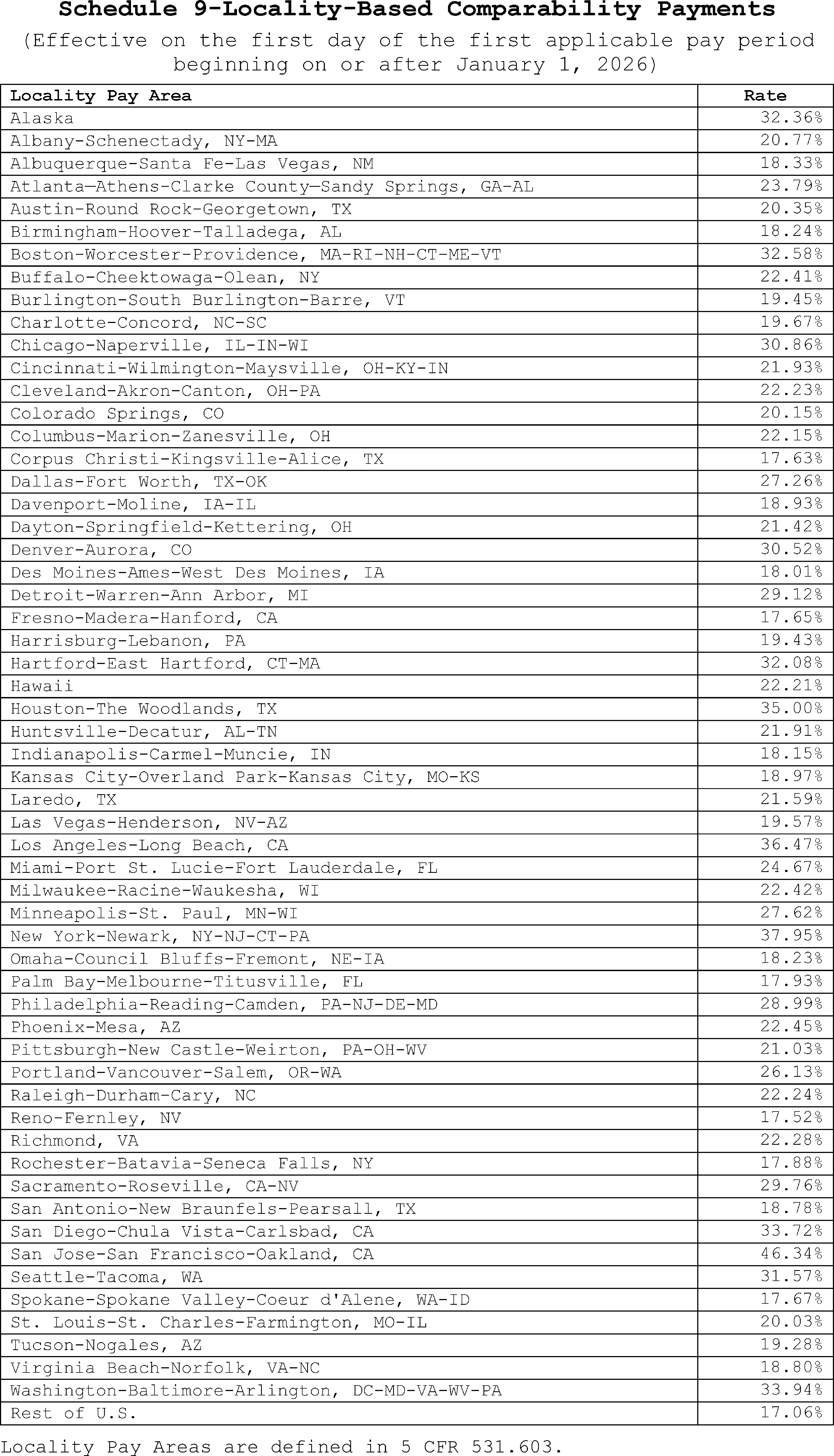 Schedule 8 is effective January 1, 2026. The other schedules contained herein are effective on the first day of the first applicable pay period beginning on or after January 1, 2026.