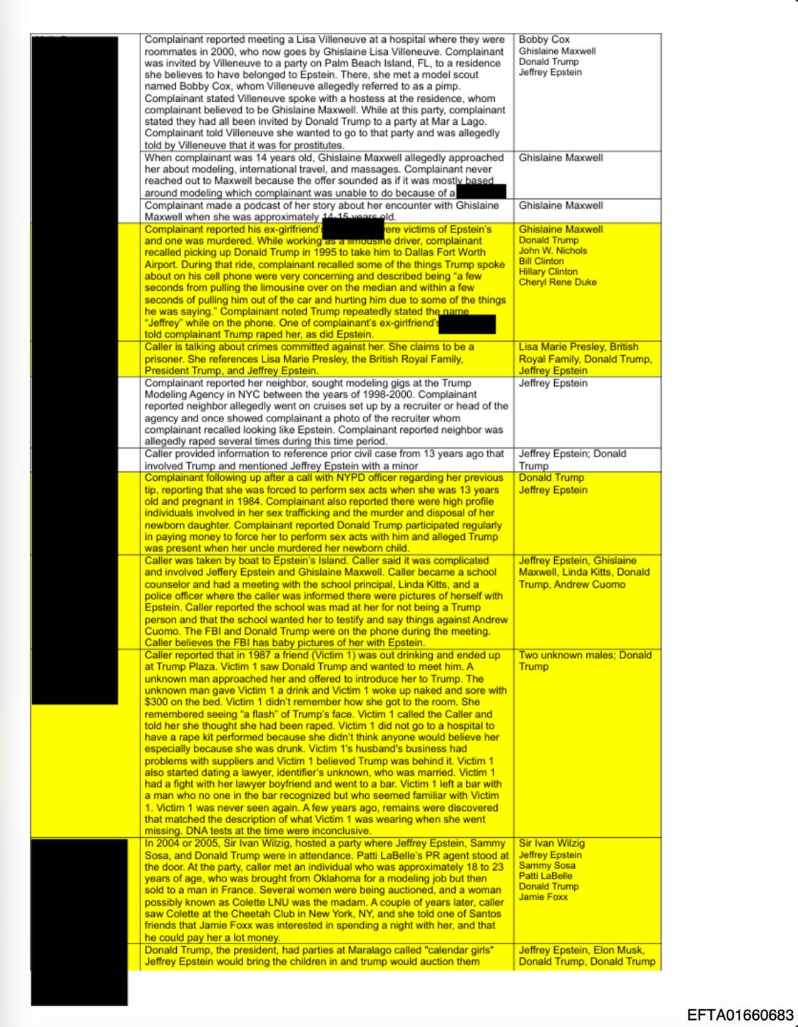 Content warning: Disturbing allegations of sexual abuse and trafficking involving minors. DOJ deleted this file after posting it. Save it while you can.