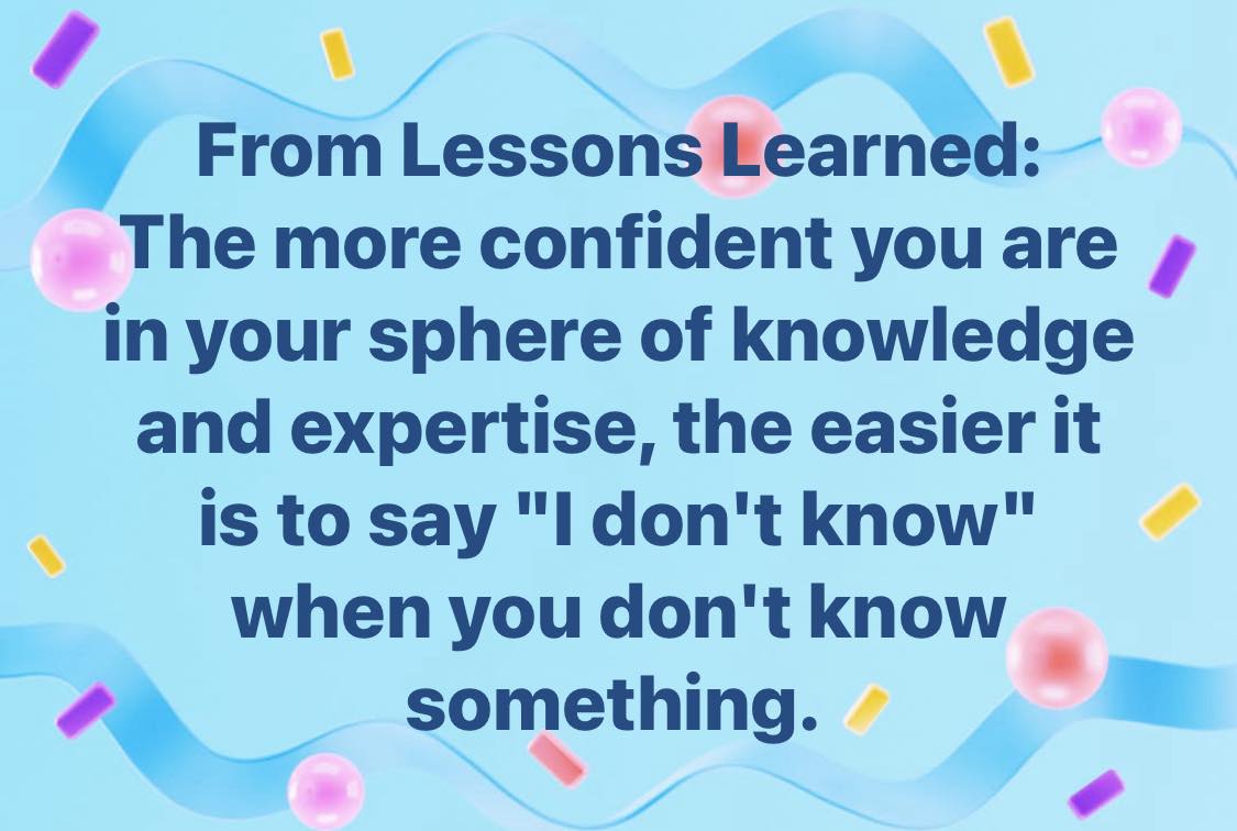 The more confident you are in your sphere of knowledge and expertise, the easier it is to say “I don’t know” when you don’t know something.