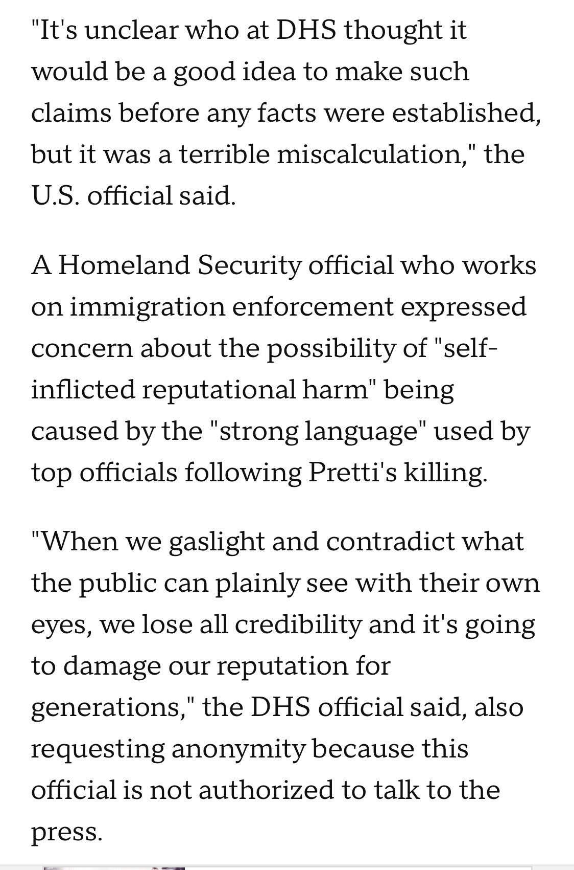 “When we gaslight and contradict what the public can plainly see with their own eyes, we lose all credibility and it’s going to damage our reputation for generations,’ the DHS official said, also requesting anonymity because this official is not authorized to talk to the