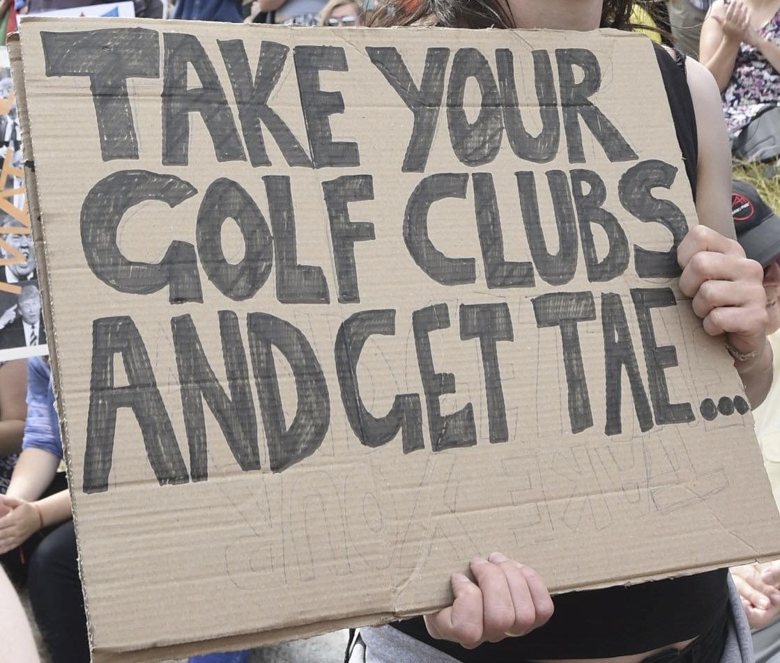 While Trump played a round at his coastal golf course, thousands across Scotland took to the streets in protest. Bagpipes blared, signs waved, and the message was clear: heβs not welcome here. Love you, Scotland! π΄σ §σ ’σ ³σ £σ ΄σ Ώ π