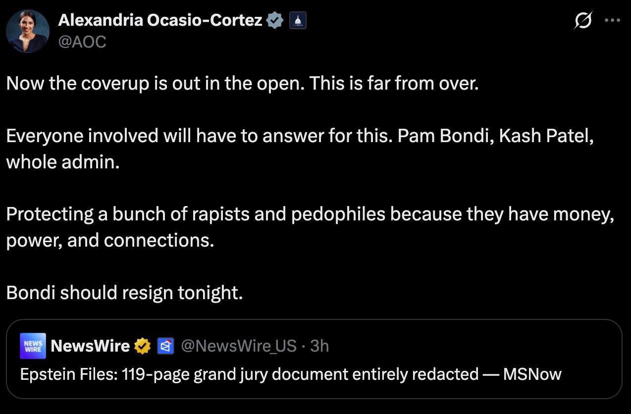 Yesterday played out exactly as many expected a cover-up. When 119 pages of grand jury documents are released entirely redacted, that goes far beyond protecting victims’ identities. A court ordered these records released, yet what the public received was effectively nothing. Putting a cover-up in plain sight didn’t protect MAGA or calm concerns. It only made the situation worse and made the lack of transparency unmistakable.
